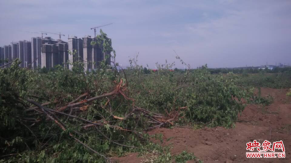 映象網(wǎng)洛陽訊(記者 徐孟國 馬曉飛)6月7日早上,伊川縣城關(guān)鎮(zhèn)周村79歲村民胡武欣一覺醒來,發(fā)現(xiàn)自家承包種植的近1畝8分掛果桃樹在凌晨3點(diǎn)全部被推毀。遭此橫禍的并非他一家,他家果園周圍鄰居的果樹也都被毀,整個(gè)毀木面積達(dá)230多畝。胡武欣稱,2014年8月份,周村村委會(huì)領(lǐng)導(dǎo)曾告知群眾這230多畝土地將被征用搞開發(fā),每畝補(bǔ)償款35000元,但老周一直未和村委會(huì)談妥,并未答應(yīng)征地,也未簽補(bǔ)償協(xié)議。在今年3月底,這片果園被人用高墻圈了起來??粗闹芏际情_發(fā)的樓盤,胡武欣懷疑砍樹是為征地搞開發(fā)“鋪路”。而事發(fā)地周村村委會(huì)及伊川縣城關(guān)鎮(zhèn)政府均否認(rèn)與此事有關(guān)。