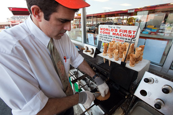 諾福克市的豆瑪冰激凌店(Doumar's)因艾比?豆瑪在1904年的圣路易斯世界展覽會(huì)上發(fā)明了美國第一支蛋卷冰激凌而聞名于世。嘗一下百年蛋卷機(jī)做出來的冰激凌,還是那古老而甜蜜的味道。