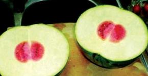 昨晚,王先生的朋友來(lái)家里做客,捎了一個(gè)西瓜。切開(kāi)后,大家都傻眼了,除了中間蘋果大小的一圈瓜瓤是紅色的外,其他瓜瓤都是白色的,連一絲紅色都沒(méi)有,也沒(méi)有瓜籽。