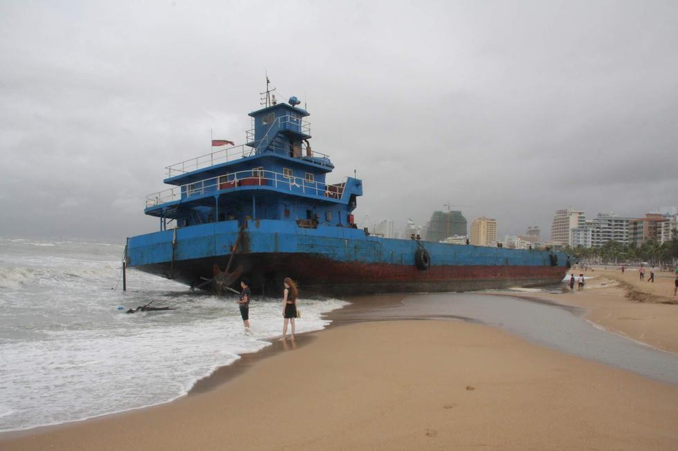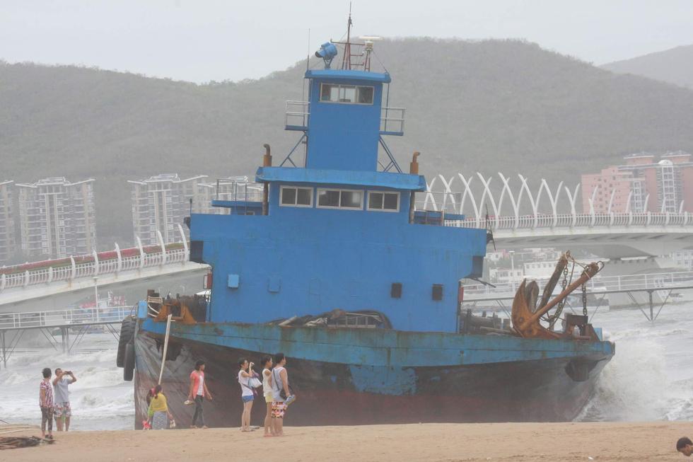 海南3艘大船被臺(tái)風(fēng)“鯨魚(yú)”刮上沙灘