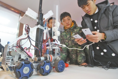咱鄭州的學(xué)生“玩”機(jī)器人很有一手!11月23日~24日,2015世界青少年機(jī)器人邀請賽在北京舉行,鄭州二中8名高中生組成的隊(duì)伍“殺入”四強(qiáng),國內(nèi)排名第二,并榮獲最佳設(shè)計(jì)獎(jiǎng)。昨日,記者見到了剛剛比賽歸來的學(xué)生們和他們設(shè)計(jì)的機(jī)器人。