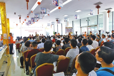 昨天下午1點(diǎn)半,中州大道與柳林東路交叉口西北角上汽車享汽車服務(wù)廣場(chǎng)車享拍鄭州拍賣(mài)服務(wù)中心,500名競(jìng)拍人熱情高漲,等候鄭州第二次公車拍賣(mài)正式開(kāi)始。