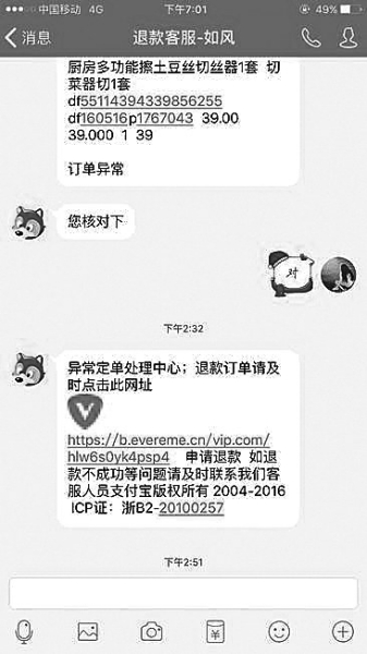 “退款不是直接可以退還到綁定的銀行卡嗎?”小帆有些疑惑。聽出小帆質(zhì)疑的意思之后,對方直接一口氣報出了小帆的個人信息,包括姓名、手機號、郵寄地址、所購商品的單號、下單的時間等。男子讓小帆加了一個QQ號,號碼名字叫“退款客服-如風(fēng)”,并將小帆的訂單信息發(fā)給她。見這一狀況,小帆放松了戒備。