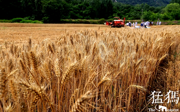 “今年小麥收割了80余畝,預計能打下來5萬斤糧,比去年120畝少了一些”,禪耕農(nóng)場負責人釋延子法師說,今年的收成并沒有受到前些天暴雨的影響,減產(chǎn)主要還是因為之前的旱情。