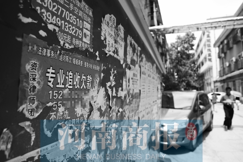 在鄭州的大街上,經(jīng)常會看到各種關(guān)于討債、調(diào)查的小廣告。