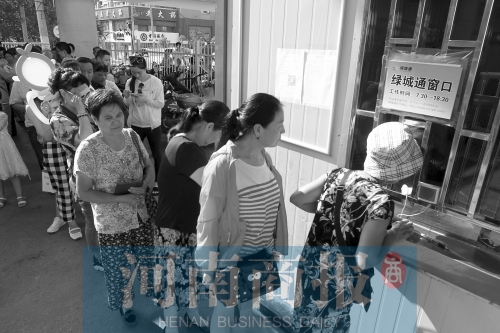 當(dāng)天下午4點(diǎn)多,位于鄭州市醫(yī)學(xué)院立交橋北引橋下的公交卡充值點(diǎn)前人頭攢動(dòng),等候辦理業(yè)務(wù)的隊(duì)伍從窗口一直排到了馬路上?!皯?yīng)該多開幾個(gè)窗口?!蓖跸壬谂帕?0多分鐘隊(duì)后抱怨道。