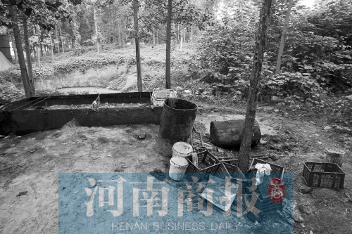 8月27日上午,二七區(qū)侯寨鄉(xiāng)青年農(nóng)場(chǎng)東300米(紫玉路南)的一片樹林中污水橫流??盏貎?nèi)擺放著近20個(gè)大油桶,幾個(gè)大鍋內(nèi)還有提煉地溝油后剩余的渣。