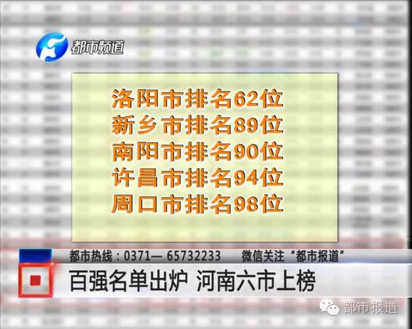 △《都市報(bào)道》:百強(qiáng)名單出爐 河南六市上榜↑↑↑