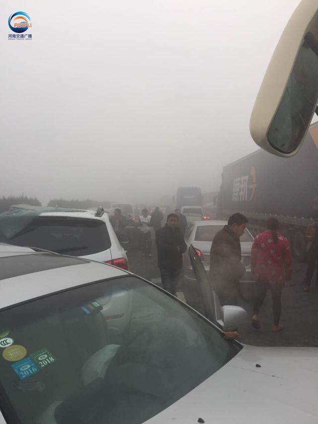 據(jù)現(xiàn)場郭先生描述:大概有4輛貨車,1輛中巴車,4輛私家車連環(huán)追尾,他就在這幾輛事故車后方,當(dāng)時受大霧影響,能見度50米左右,前方堵車,結(jié)果這幾輛車都沒剎住,直接相繼撞上了,郭先生說“幸虧當(dāng)時我車速不算快,及時把車剎住,不然前方就是一輛貨車,撞上去的話后果不堪設(shè)想,現(xiàn)在我的手都是抖的,太恐怖了”