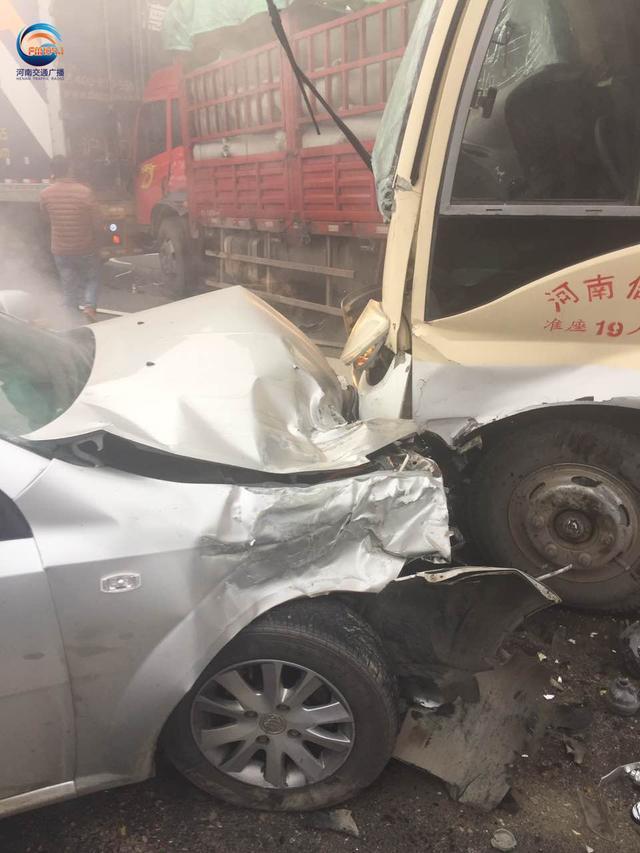今天(11月14日)連霍高速西向東方向,距開封下站口3.5公里左右,發(fā)生多車連環(huán)追尾事故,車損很嚴(yán)重,有人員受傷。