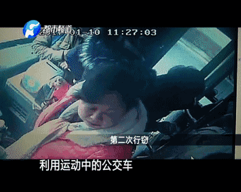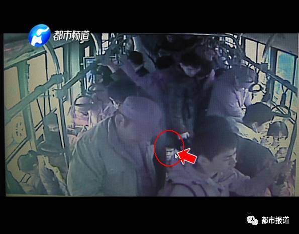 這是發(fā)生在鄭州市B12路公交車上的監(jiān)控視頻畫面,上午十點(diǎn)多,車廂內(nèi)的乘客很多。