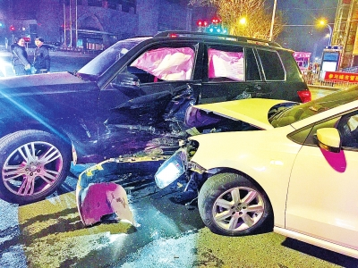 車(chē)禍發(fā)生時(shí),已是2月15日的凌晨4時(shí)許,在紫荊山路與東大街交叉口,發(fā)生碰撞的兩輛車(chē)為一輛大眾Polo轎車(chē)和一輛奔馳GLK越野車(chē)。大眾轎車(chē)攔腰撞上奔馳車(chē),兩車(chē)均受損嚴(yán)重變形。