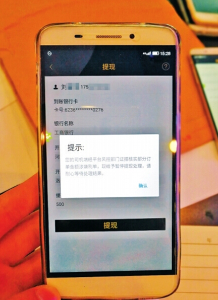 司機(jī)提現(xiàn)時,賬戶被禁止提現(xiàn)。