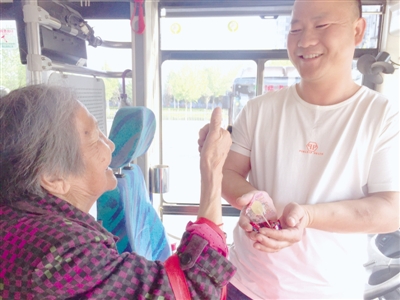 據(jù)40路公交車長李帥鵬介紹,“糖果奶奶”的糖,還“救”過他。
