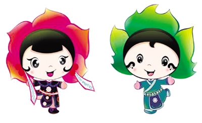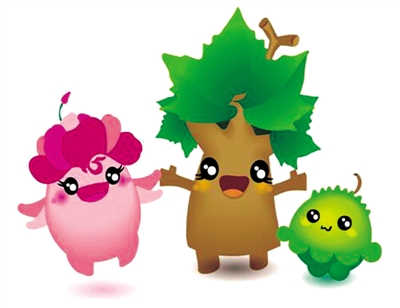 造型以綠色為主色調(diào),園藝氣息濃厚,頭頂不同的花草造型,體現(xiàn)園藝豐富的藝術(shù)形態(tài),手拉手相伴而走,體現(xiàn)自然與人類和諧共生的發(fā)展理念。身體的圖案是中國青銅器花紋,凸現(xiàn)與中華文明的淵源。