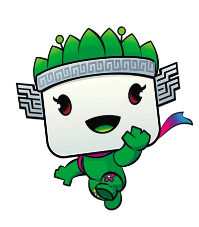 吉祥物頭飾由“中”字、“月季花”和“花心”組成,“中”字代表中原,即中原承載的文化個(gè)性與屬性,月季花是鄭州的市花,花心代表未來和希望,頭飾中發(fā)箍采用青銅紋飾的造型語言進(jìn)行表現(xiàn),胸前的紋飾則采用傳統(tǒng)圭紋提煉演繹而成。青銅紋與圭紋的使用,體現(xiàn)中原商鼎及玉圭禮器文化的淵源。