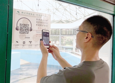進入動物園后,還能自助游園。通過覆蓋全動物園的免費WIFI,掃描二維碼導游牌,語音講解就開始了。語音導游系統(tǒng)包括25個場館,每個場館的圖片和語音相互搭配,站在場館外的“門外漢”即可了解場館內“洞天”。如一次沒有聽清楚,沒關系,可重復聽取講解。