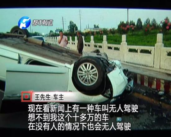 王先生說(shuō),當(dāng)時(shí)他將車停在路邊,準(zhǔn)備下車打電話,沒想到剛剛下車,車就自個(gè)兒跑了。汽車一路“狂飆”,王先生眼睜睜地看著自己的轎車撞向路中間的轉(zhuǎn)盤。
