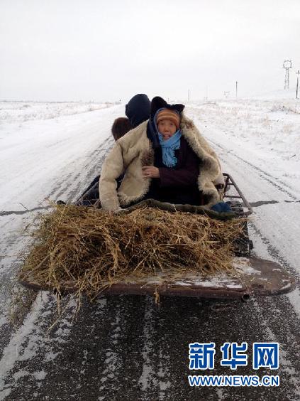 由于降雪導(dǎo)致牧區(qū)交通不暢,給牧民的生產(chǎn)生活帶來很大的困難。采訪沿途,記者見到了一輛毛驢車上從遠(yuǎn)處駛來,車上坐著兩位老人。73歲的正藍(lán)旗烏蘭二隊(duì)的農(nóng)民張藍(lán)花說,雪太大班車也不通,老伴犯了腎病,他們只好在家門口鏟出小道,趕著毛驢車走到了公路上,準(zhǔn)備到鎮(zhèn)醫(yī)院看病。