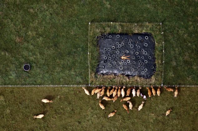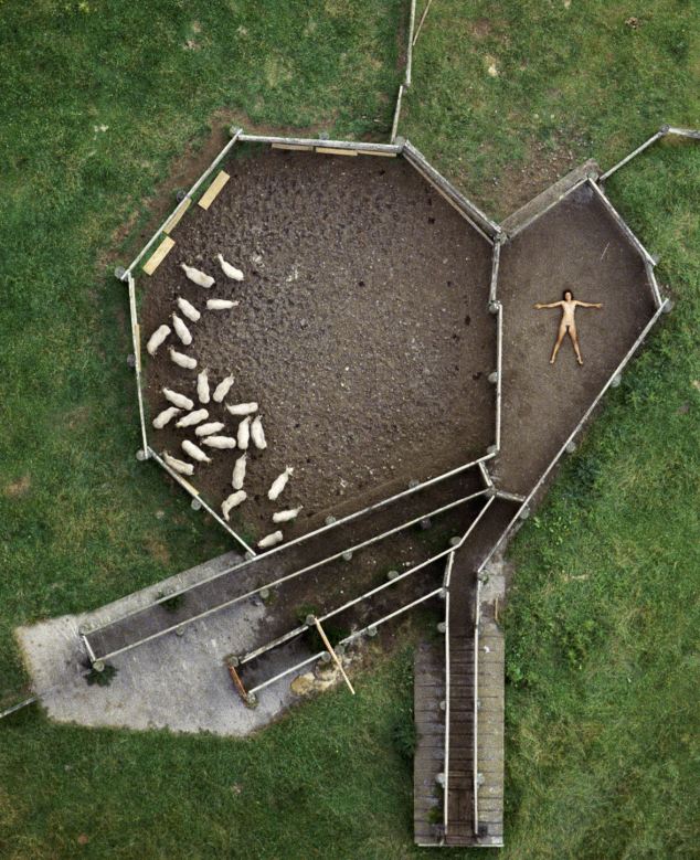 據(jù)悉,1984-1987年間,約翰利用直升機(jī)航拍了一組妻子的裸體照片。妻子在農(nóng)田、養(yǎng)豬場(chǎng)、機(jī)場(chǎng)跑道、海邊、鐵軌及移動(dòng)的汽車上一絲不掛,舒展著四肢。他說(shuō):“在那些地點(diǎn)拍攝裸體照片,可以反襯出人類在大千世界的渺小和微不足道?!?/p>