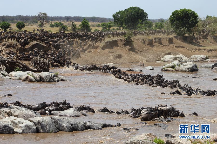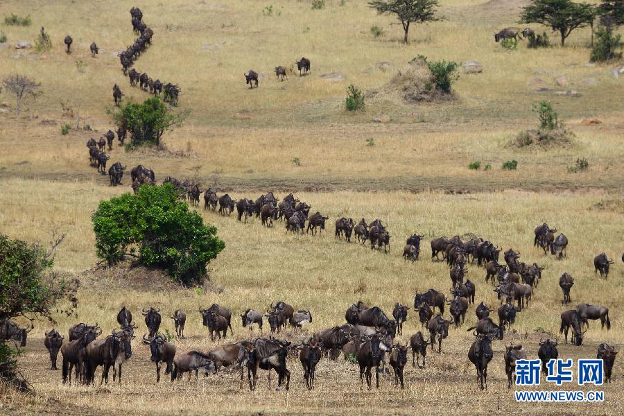 這是8月17日在坦桑尼亞塞倫蓋蒂國家公園內(nèi)拍攝的角馬遷徙隊(duì)伍。每年7月至9月是坦桑尼亞的旱季,為了追逐水源和青草,以角馬和斑馬為主的數(shù)以百萬計(jì)的食草動物從塞倫蓋蒂向肯尼亞馬賽馬拉遷徙。這場“地球上最壯觀的動物大遷徙”全程超過1000公里,動物在往返途中需兩次渡過鱷魚出沒、危機(jī)重重的馬拉河。新華社記者張平攝