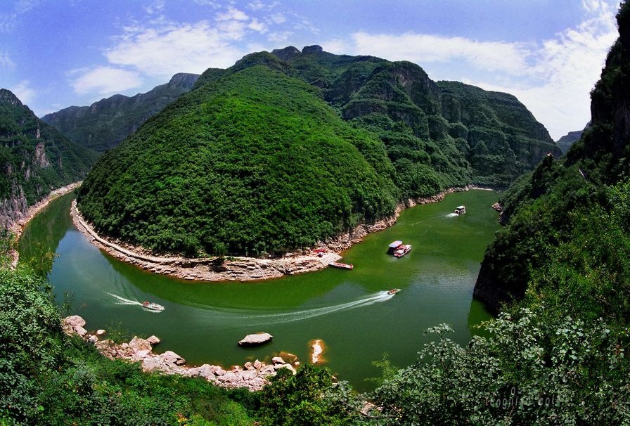 青天河濱水棧道全長8000米,沿大泉湖西岸而建,依山就勢,臨水傍湖,為游客近距離觀賞大泉湖、駱駝峰、千奇洞、鯨魚灣等精品景點(diǎn)提供了便利。沿棧道前行,可以穿深峽、探幽谷、覓奇洞,移步換景,峰回路轉(zhuǎn),偶爾幾掛飛瀑,驀然一處險(xiǎn)峰,一山一天地,一灣一境界。穿行于棧道,恰似穿行于一條奇妙的丹青畫廊,聽山水清音,賞湖光山色,歷人間仙境,覓世外桃源,于你是一次物我兩忘的精神之旅。
