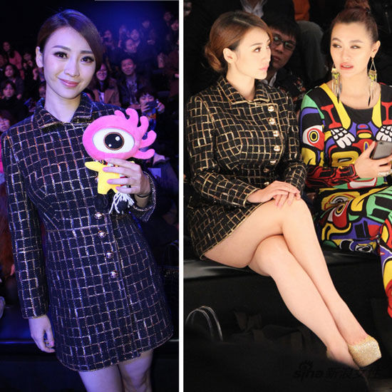 2013年3月24日,北京,中國國際時裝周正式拉開帷幕。當天旭陽高照,明星也紛紛“出洞”亮相,柳巖身穿軍裝式的排扣OL大衣,露出白花花大腿,坐下看秀時險些走光;愛戴一襲爆款涂鴉嘻哈民族風長裙賺足眼球。