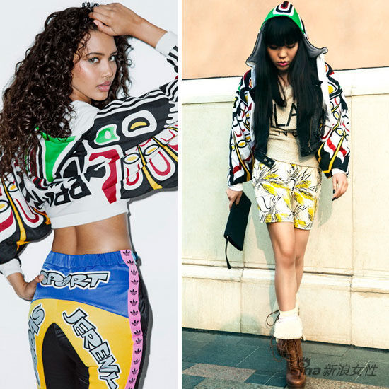 愛戴接受新浪時尚獨家專訪時談到,自己身穿的這套服裝來自adidas Originals x Jeremy Scott系列,并用一雙休閑鞋來搭配,比平時穿高跟鞋舒服多了。