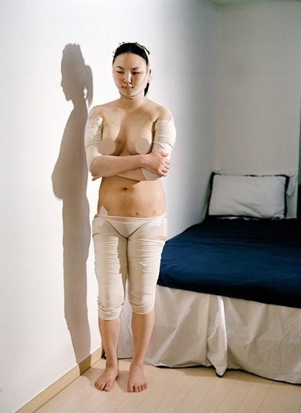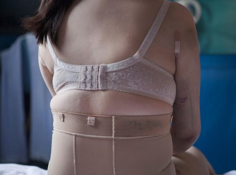 束身衣上下的身型是她的過(guò)去和未來(lái),滿是術(shù)后的淤青,疼痛成為美麗代價(jià)的一部分。
