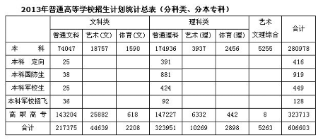 河南省2013年普通高等學(xué)校招生計劃統(tǒng)計總表(分科類、分本專科)