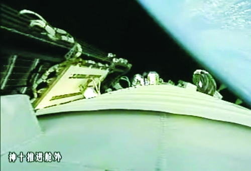 神舟十號飛船發(fā)射升空后,推進艙外的視頻截圖。新華社發(fā)