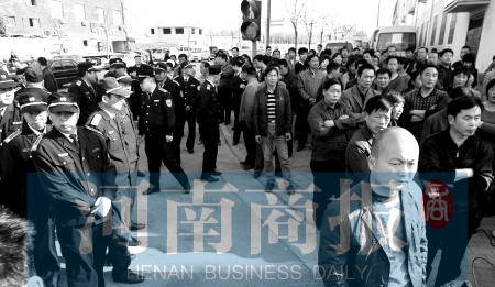 4月5日下午3時(shí)20分許,鄭州市長江路與工人路交叉口東、西、北三個(gè)方向的路口處,站著近百人,將此處堵得嚴(yán)嚴(yán)實(shí)實(shí),過往車輛只能繞行。