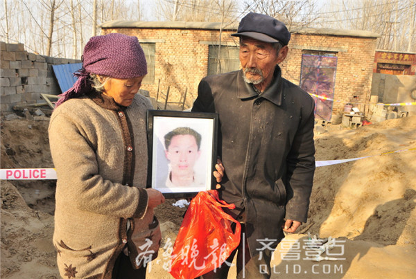 2011年,聊城市東阿縣劉集鎮(zhèn)東三合村楊福芝的兒子楊貞祥失蹤了。老兩口苦苦尋找,尋子成了老兩口的心病。五年后,楊貞祥失蹤案破案,楊貞祥系被本村村民董某某和楊福芝的兒媳劉某某殺害。12月5日,犯罪嫌疑人指認(rèn)埋尸地點(diǎn),在離楊福芝家50米的地方,兒子的遺骸從2米深的坑里被挖出,老人痛哭失聲,悲痛不已。