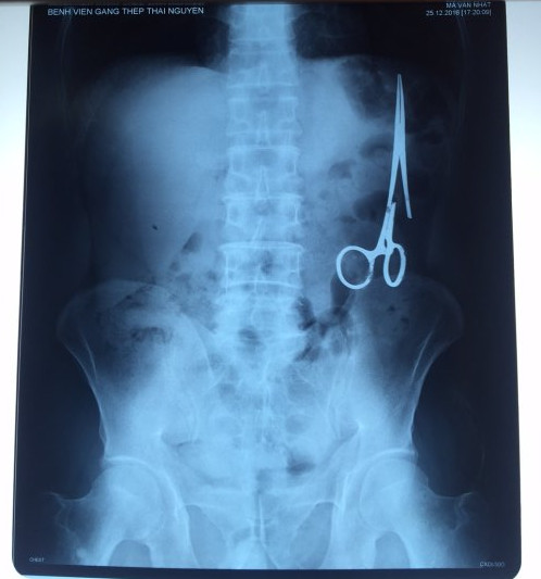 超聲波檢查顯示,M.V.N的腸子中有個奇怪物體,看起來就像醫(yī)用剪刀。M.V.N證實,他曾于1998年6月份在北江省綜合醫(yī)院接受手術(shù),在此后也從未進(jìn)行過任何手術(shù)。近來,他感到腹部有些疼痛,并試圖通過服用藥物治療。12月27日,M.V.N回到北江省綜合醫(yī)院再次進(jìn)行超聲波檢查,顯示其腹部的確存在怪異物體。