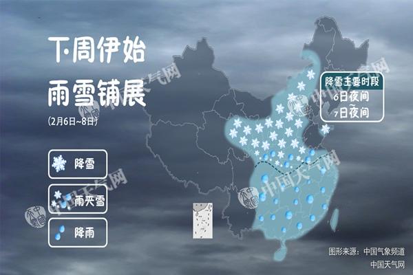 不過,今天開始隨著一股冷空氣影響我國,中東部將出現(xiàn)大范圍雨雪天氣。中央氣象臺預計,2月6日至8日夜間,西北地區(qū)東部、華北、黃淮中西部將有小到中雪,陜西關(guān)中、河南南部、湖北西北部、安徽沿淮地區(qū)、江蘇中北部等地有雨夾雪或雨夾雪轉(zhuǎn)雪,上述局部地區(qū)有大雪;西南地區(qū)東部、漢水下游、江淮、江南和華南等地有小到中雨。