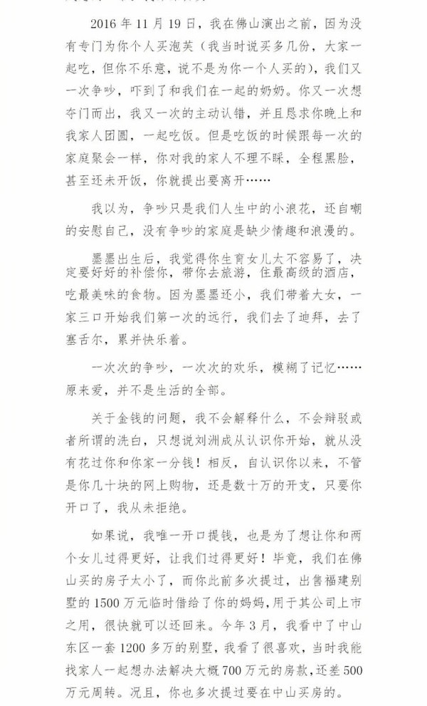 5月23日凌晨,劉洲成發(fā)微博回應(yīng)家暴致前妻林苗流產(chǎn)及要求前妻出錢買房等傳聞。劉洲成更是曬出了昔日的聊天記錄、代付清單、借記卡賬戶歷史明細(xì)清單等證據(jù),疑似反駁前妻所述不實(shí)。劉洲成長(zhǎng)文截圖6 劉洲成長(zhǎng)文截圖7