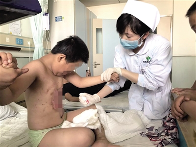11歲男孩胸腹被燒傷住進(jìn)醫(yī)院
