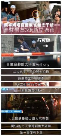 28日據(jù)媒體報(bào)道,阿Sa(蔡卓妍)連續(xù)兩晚被拍到與“百億麻將館太子爺”石恒聰同屋過(guò)夜,兩人疑似熱戀中。