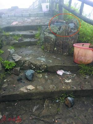 另據(jù)隊長羅燦輝在山頂上察看發(fā)現(xiàn),山頂有多塊巨石被雷電擊碎散落在地面上。其中有一塊被擊碎的巨石,后經(jīng)證實,就是事發(fā)時王女士所站的區(qū)域。