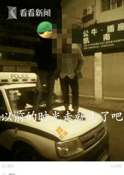 這張照片是兩名男子相互依靠,站在警車引擎蓋上所拍攝的,這張圖片上還配上了一句“以前的時光走就走了吧”, 警方了解到,這張照片是在一個名叫“快手”的社交軟件上進(jìn)行發(fā)布的,而這個軟件在登記注冊的時候需要進(jìn)行實名認(rèn)證。