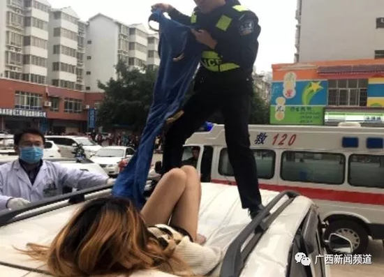 據(jù)來賓市公安局城警支隊東盟警務站覃警官介紹,當天上午8時20分左右,他們接到群眾報警后趕到現(xiàn)場,看到一名年輕女子躺在一輛面包車頂上,嘴唇出血,腰部有血跡。