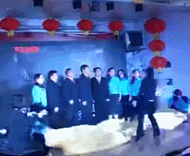 節(jié)目中參賽選手伴著《黃河大合唱》的背景音樂,做出一些夸張另類的肢體動(dòng)作,當(dāng)時(shí)這段表演引得現(xiàn)場四位評委大笑,并獲得全票通過。
