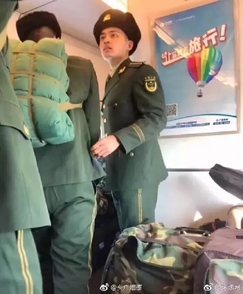 前兩天,@央廣軍事 發(fā)微博稱,一批剛從軍校畢業(yè)的學(xué)員登上了開往分配地的列車,幾乎占滿整個車廂。一些沒有買到坐票的乘客怨聲載道,嘟囔著為什么當(dāng)兵的不給讓座。