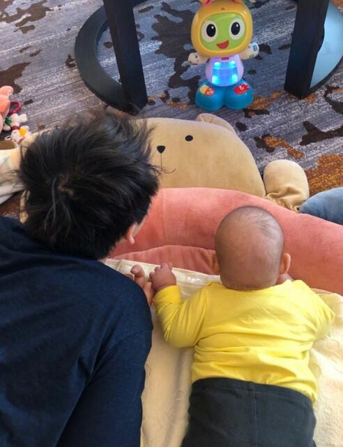 網(wǎng)易娛樂(lè)2月8日?qǐng)?bào)道 2月8日中午,董子健曬出一張和女兒大福的合照,和女兒玩具機(jī)器人爭(zhēng)寵,字里行間充滿了醋味。大福圓滾滾后腦勺好不可愛(ài),超級(jí)搶鏡!