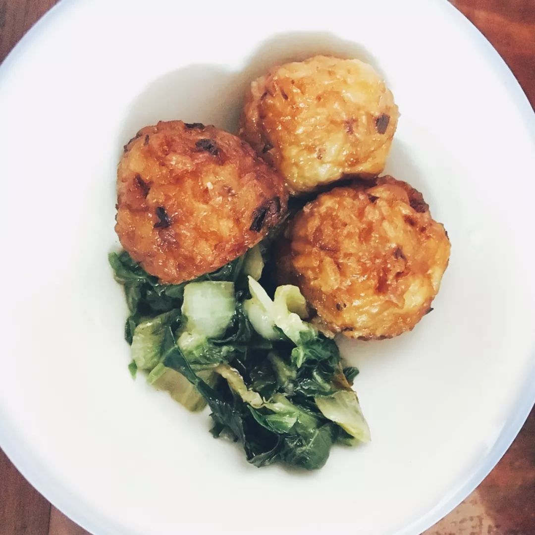 家里的習(xí)俗,小孩子年夜飯一定要先吃一口青菜,“清清濟(jì)濟(jì)”(家鄉(xiāng)方言),吃一口圓子,“團(tuán)團(tuán)圓圓”。小時(shí)候,外婆每年都會(huì)給我們先夾這兩樣到碗里,笑呵呵地讓我們吃。她走后,我們?nèi)匀槐3至诉@個(gè)習(xí)慣。