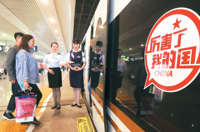 “厲害了,我的國!”在以350公里時(shí)速行進(jìn)的“復(fù)興號”列車上,這6個(gè)紅色的大字格外醒目。