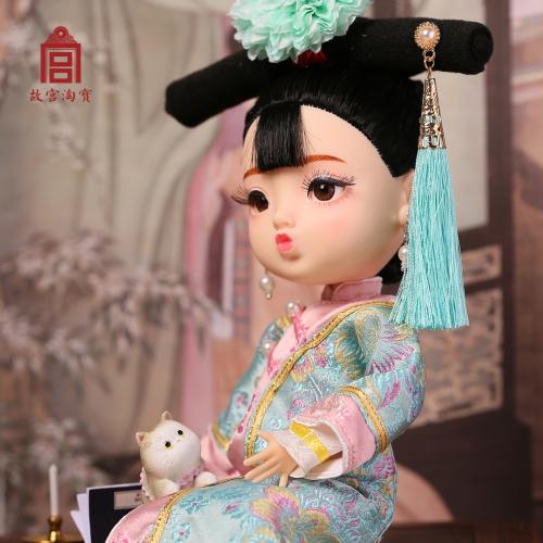 記者在故宮文創(chuàng)的網(wǎng)店上看到,這款娃娃的創(chuàng)意來源于中國古代的格格。介紹稱,“格格”本是滿語中對(duì)未出嫁女子的稱呼,意味著姑娘。皇太極繼位后,仿明制,皇帝女兒開始稱為“公主”,“格格”就成了王宮貴胄女子的專稱。