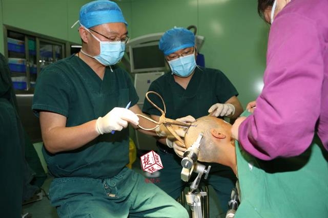 醫(yī)生檢查發(fā)現(xiàn),剪刀刀尖斜嵌在沈某顱骨里,離腦髓只有兩三毫米。所幸是斜著插進去,如果是垂直刺入,很有可能造成癱瘓。最終經(jīng)過手術(shù),剪刀被取出,沈某目前仍在ICU進一步觀察。