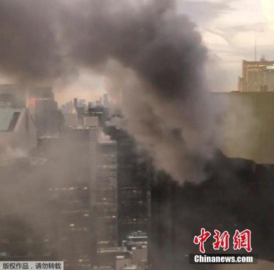 資料圖片:當(dāng)?shù)貢r(shí)間2018年1月8日,美國紐約,據(jù)美國CBS網(wǎng)站報(bào)道,位于紐約市曼哈頓第五大道與56街交叉處的特朗普大廈起火,現(xiàn)場濃煙滾滾。