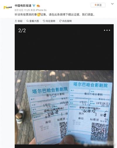 內(nèi)蒙古網(wǎng)友Zinc_Zn_Zn在微博上曬出包百嘉峻影城偷票房,她買的《一出好戲》的票,結(jié)果票根卻是《愛情公寓》。該影城提供了當(dāng)天所有影片排場證明,《愛情公寓》為19:10的場次,同一時間沒有《一出好戲》的場次,網(wǎng)友微博所發(fā)情況不屬實。